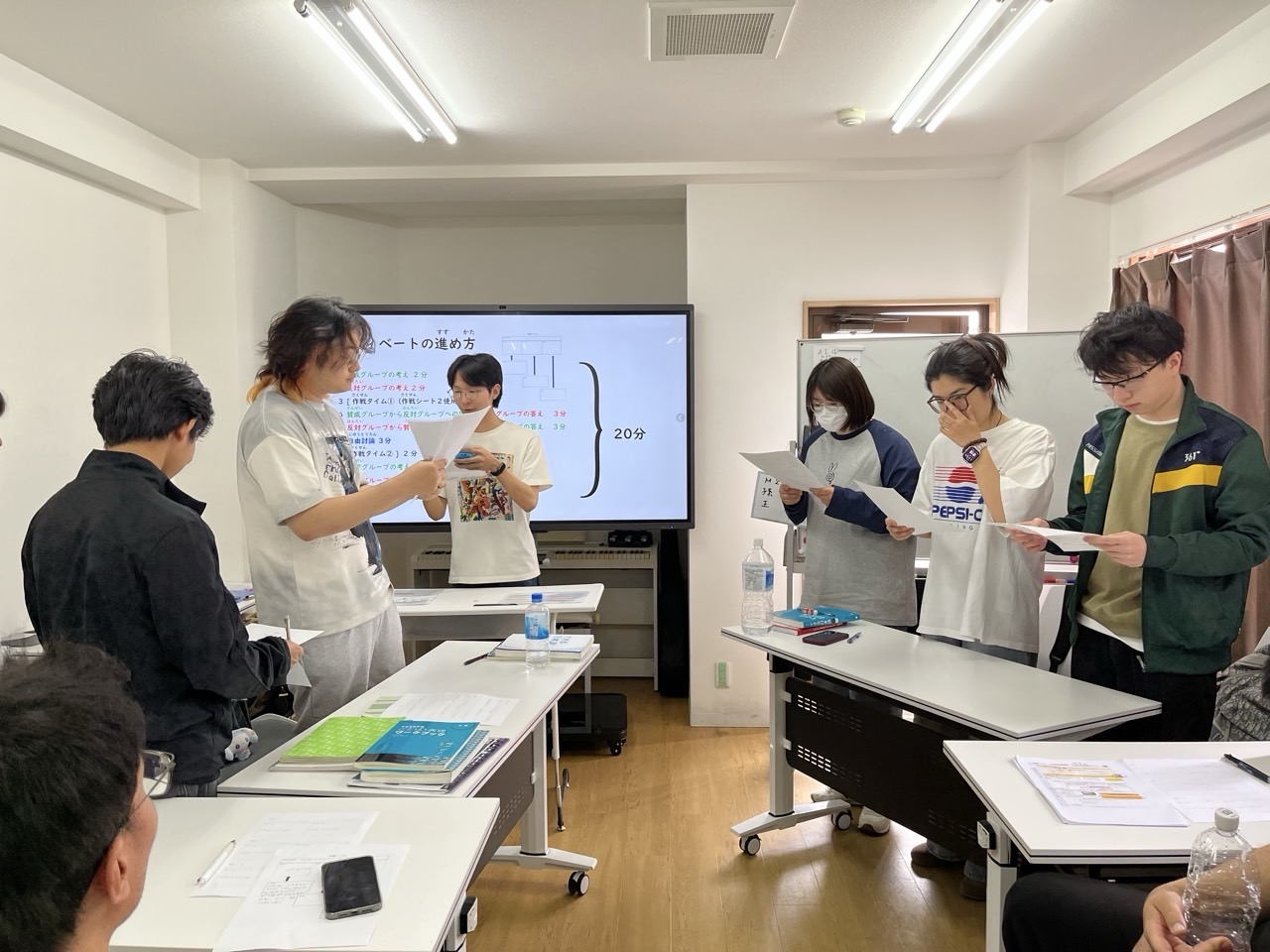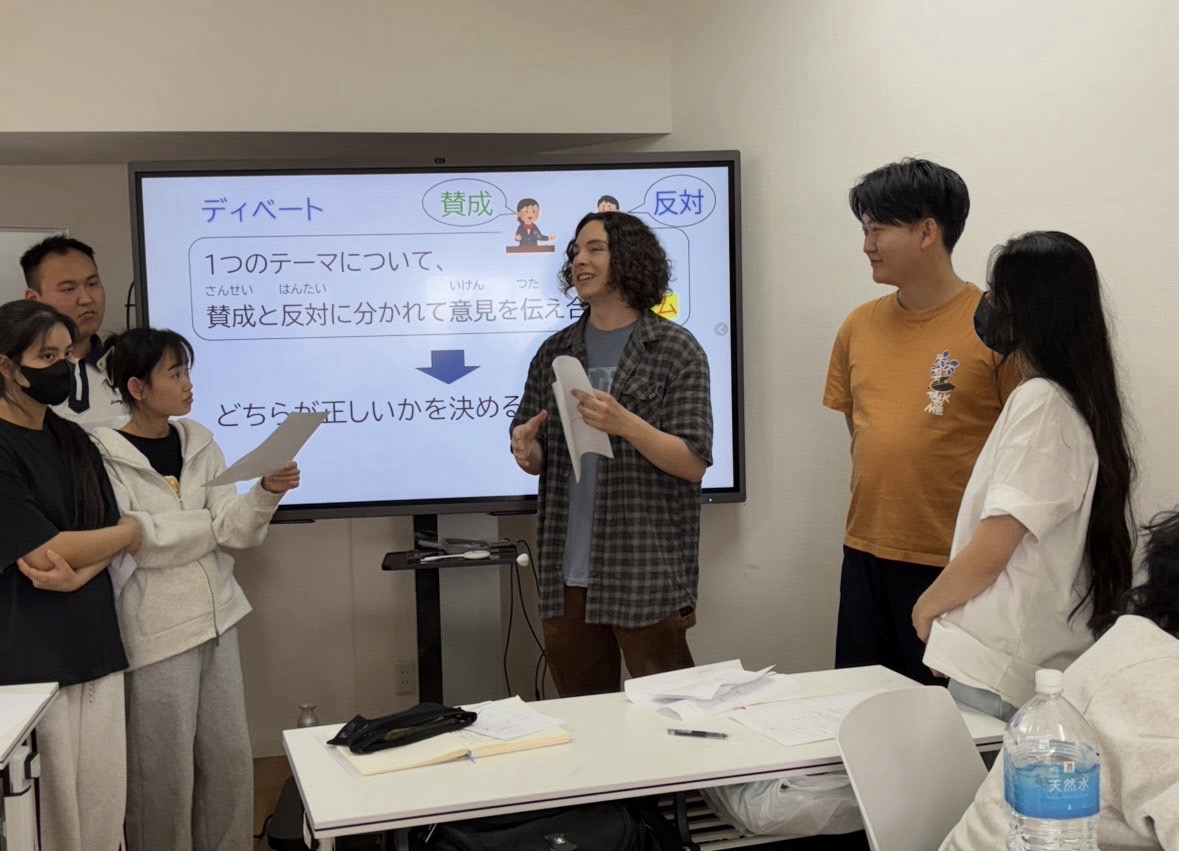 4月21日 中級クラスでディベート授業を行いました。自分の意見をしっかり持って、活発に意見交換。いろいろな考えに触れながら、楽しく学びを深める時間になりました。